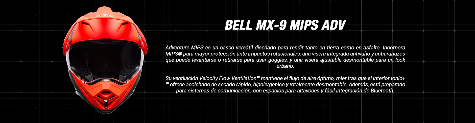 Con su diseño robusto, su comodidad superior y su estilo agresivo, el MX-9 Adventure DLX Mips está preparado para acompañarte en cada nueva ruta, sin importar el terreno.