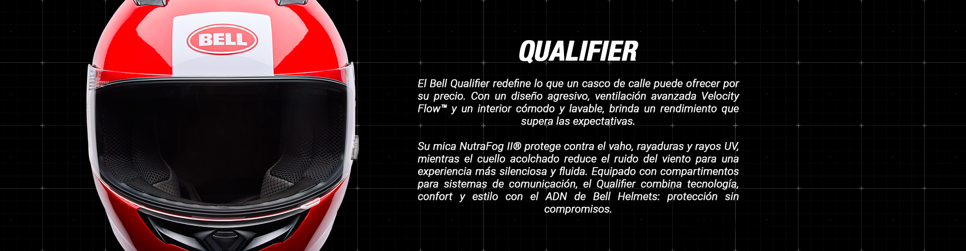 Qualifier ofrece un rendimiento excepcional a un valor increíble. Además de un ajuste y comodidad sobresalientes, viene completamente equipado con un diseño agresivo, el sistema NutraFog II, un visor claro anti-rayaduras y anti-empaño, ventilación Velocity Flow, un forro extraíble y lavable, bolsillos integrados para altavoces y un cuello de viento acolchado.