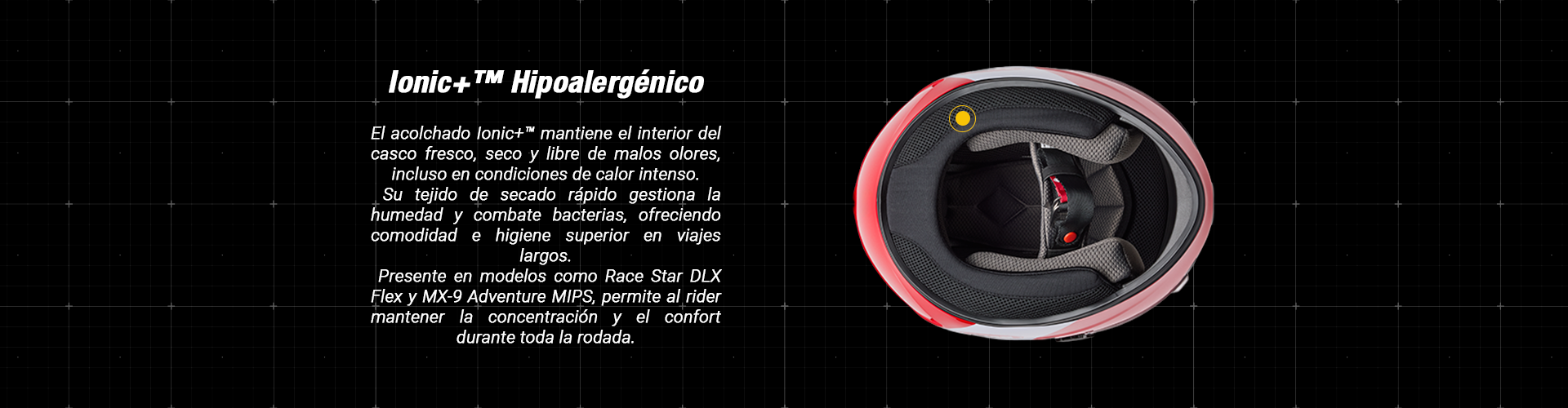 - Construcción en cuello de viento acolchado que reduce drásticamente el ruido del viento y de la carretera.